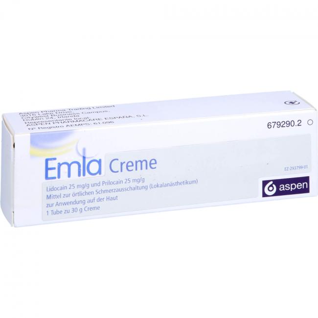 Emla 25 mg/g + 25 mg/g Creme. Wirkstoffe: Lidocain, Prilocain. Anwendungsgebiete: Erwachsene, Jugendliche und Kinder: es kann zur Betäubung der Haut angewendet werden vor einem Nadeleinstich (z.B. wenn Sie eine Injektion bekommen oder zur Blutabnahme) und/oder vor kleineren operativen Eingriffen an der Haut. Erwachsene und Jugendliche: Es kann auch angewendet werden zur Betäubung der Genitalien vor einer Injektion und medizinischen Eingriffen wie Warzenentfernung. Ein Arzt oder das medizinische Fachpersonal sollte EMLA an den Genitalien anwenden. Erwachsene: Es kann auch zur Betäubung der Haut angewendet werden vor Reinigung oder Entfernung von geschädigter Haut bei Beingeschwüren. Warnhinweis: Enthält Macrogolglycerolhydroxystearat (Ph.Eur.).