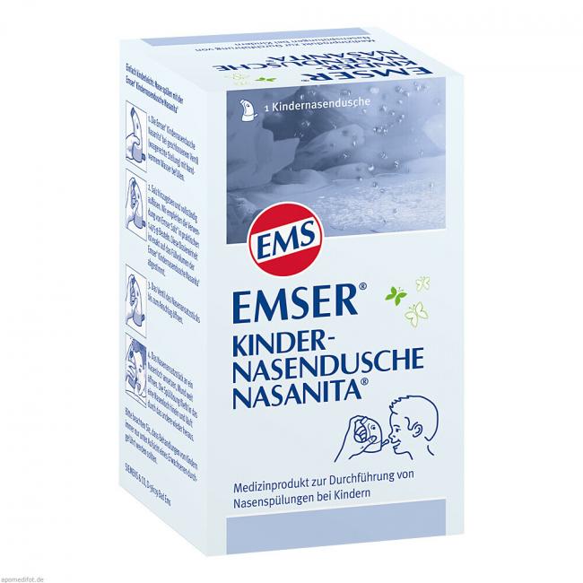 Die Emser Kindernasendusche Nasanita ist ein kindgerechtes Medizinprodukt zur Reinigung und Befeuchtung der Nasenhaupthöhle. Die Emser Kindernasendusche Nasanita ist an die kindliche Ergonomie angepasst und ermöglicht Kindern zwischen 3 und 12 Jahren, unter Aufsicht eines Erwachsenen, eigenständig die Nase zu spülen.