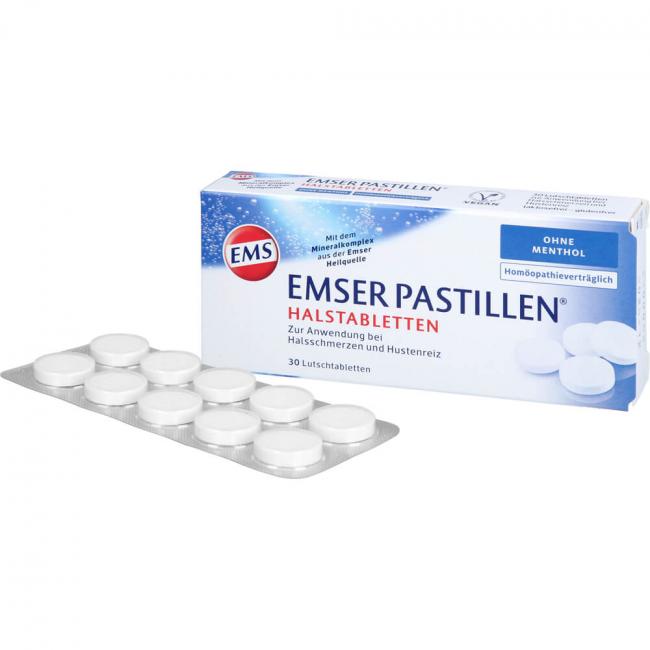- Emser Pastillen Halstabletten ohne Menthol Packung mit 30 Lutschtabletten,