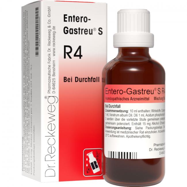 Entero-Gastreu S R 4, Mischung flüssiger Verdünnungen. Anwendungsgebiete: Die Anwendungsgebiete leiten sich von den homöopathischen Arzneimittelbildern ab. Dazu gehört: Besserung der Beschwerden bei Durchfall. Warnhinweis: Enthält 37 Vol.-% Alkohol!