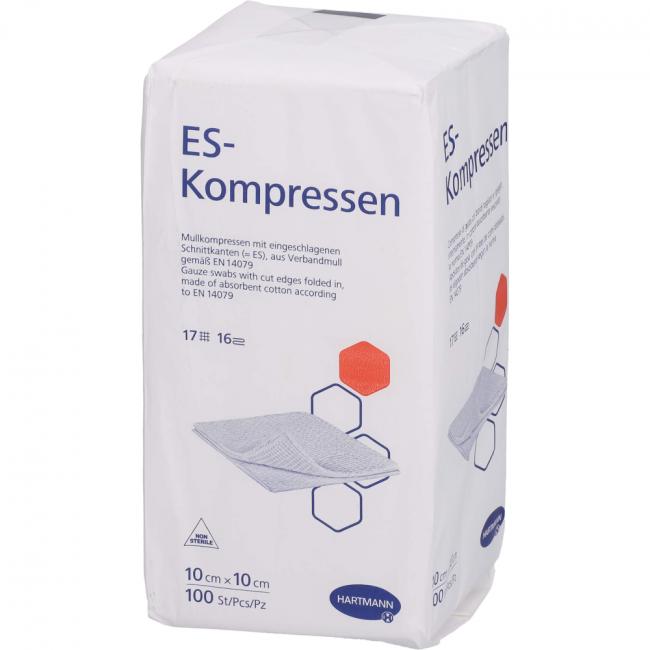 Pflichtangaben ES-KOMPRESSEN unsteril 10x10 cm 16fach, 100 Stück