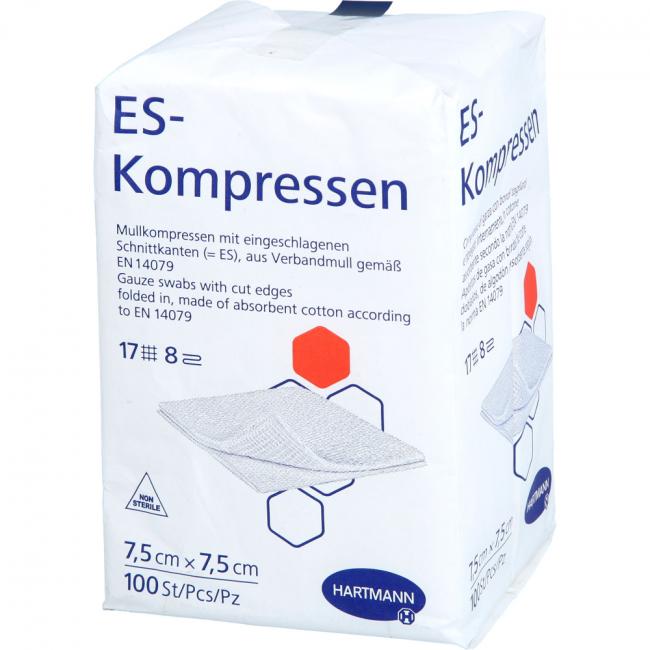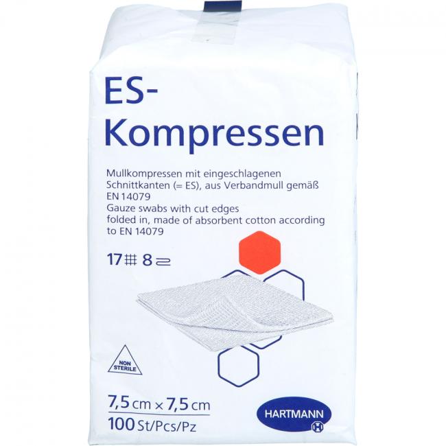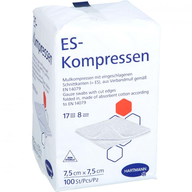 Pflichtangaben ES-KOMPRESSEN unsteril 7,5x7,5 cm 8fach, 100 Stück