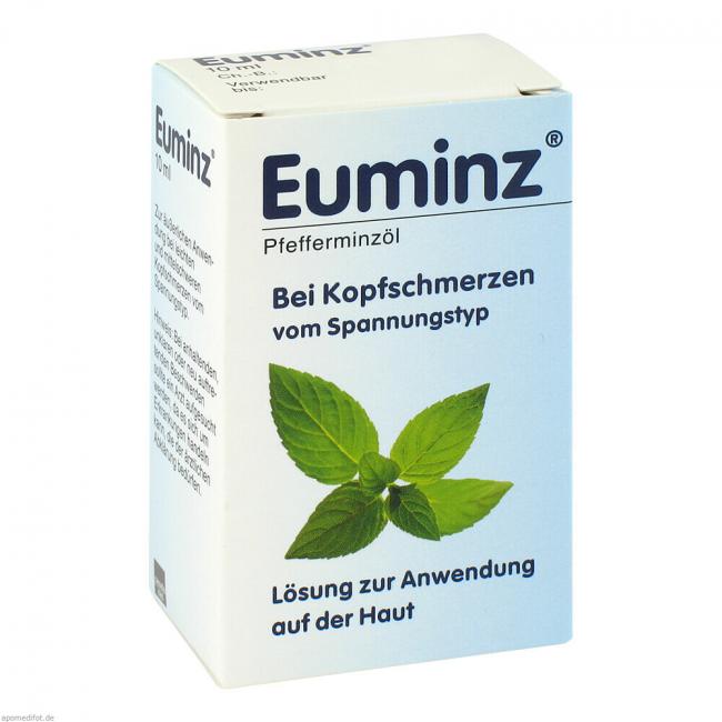 Euminz ist ein pflanzliches Arzneimittel zur äußerlichen Behandlung von Kopfschmerzen. Euminz wird angewendet: zur äußerlichen Anwendung bei leichten und mittelschweren Kopfschmerzen vom Spannungstyp.