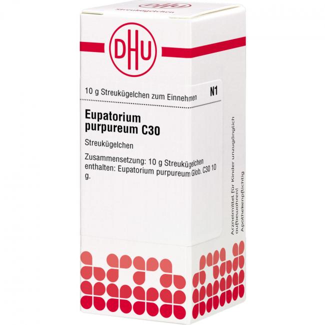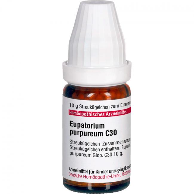 Eupatorium Purpureum C 30. Anwendungsgebiete: Registriertes homöopathisches Arzneimittel, daher ohne Angabe einer therapeutischen Indikation. Warnhinweis: Dieses Arzneimittel enthält Sucrose (Saccharose / Zucker).
