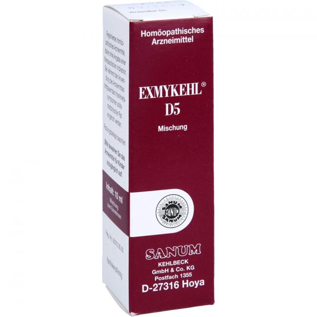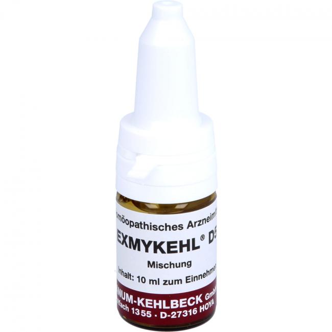 Exmykehl D5 Mischung. Wirkstoff: Candida albicans e volumine mycelii (lyophil., steril.) D5, Candida parapsilosis e volumine mycelii (lyophil., steril.) D5, Penicillium roquefortii e volumine mycelii (lyophil., steril.) D5. Anwendungsgebiete: Registriertes homöopathisches Arzneimittel, daher ohne Angabe einer therapeutischen Indikation.