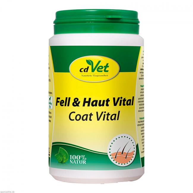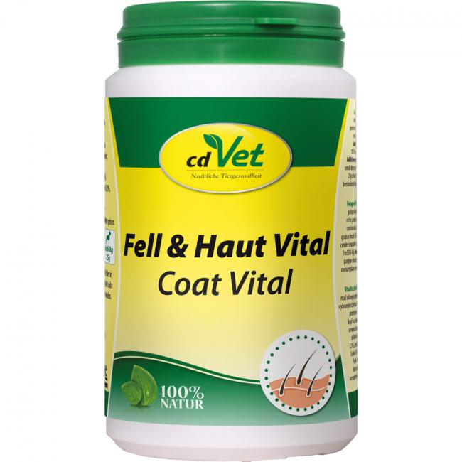cdVet Fell & Haut Vital ist ein rein natürliches Ergänzungsfuttermittel zur intensiven Unterstützung des Organismus bei stumpfen und trockenem Fell, Haarbruch und -verlust, Schuppen und anderen Hautirritationen, die oft Folgen von Stress und Mangelsituationen, sowie Belastungen durch synthetische Stoffe sind. cdVet Fell & Haut Vital besteht aus speziellen Kräutern, Hefen, essentiellen Fettsäuren, Mikronährstoffen, Spurenelementen und Vitaminen, die dabei helfen ernährungsbedingte Defizite auszugleichen und somit für eine optimale Kondition der Entgiftungsorgane sorgen.