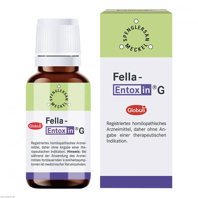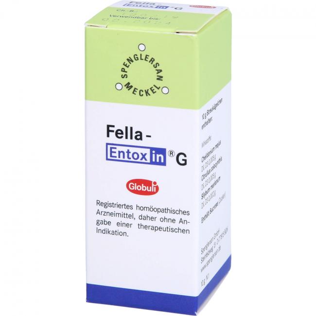 Fella-Entoxin G, Streukügelchen. Anwendungsgebiete: Registriertes homöopathisches Arzneimittel und daher ohne Angabe einer therapeutischen Indikation.