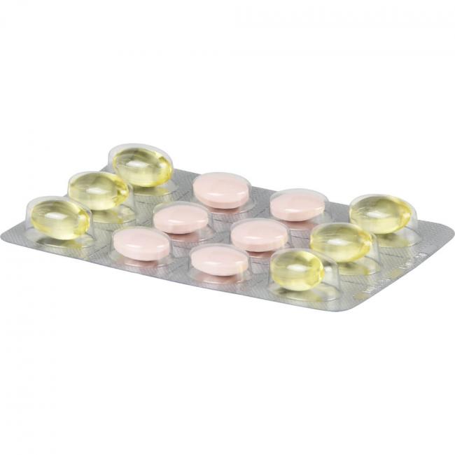 1 Tablette und 1 Kapsel pro Tag mit ausreichend kalter Flüssigkeit zu einer der Mahlzeiten einnehmen.