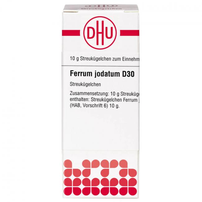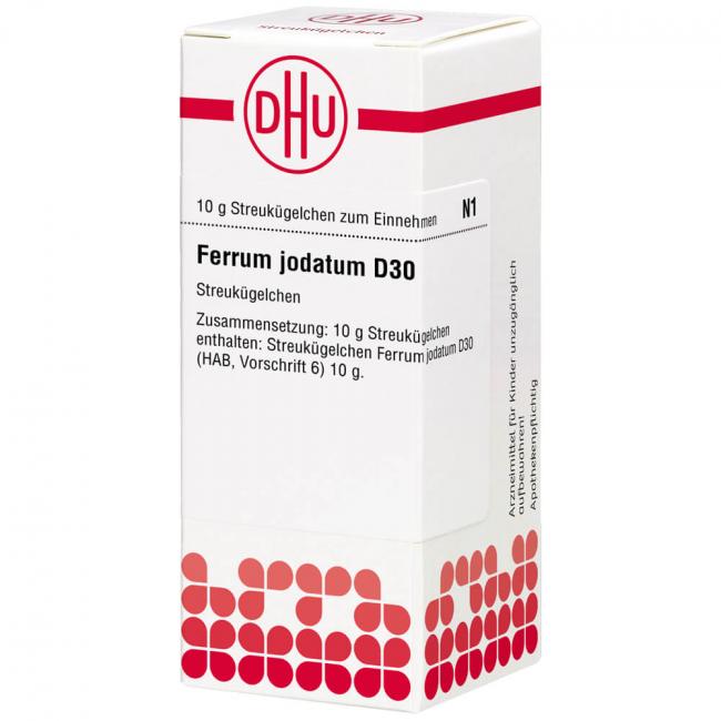 Ferrum jodatum D 30. Anwendungsgebiete: Registriertes homöopathisches Arzneimittel, daher ohne Angabe einer therapeutischen Indikation. Warnhinweis: Dieses Arzneimittel enthält Sucrose (Saccharose / Zucker).