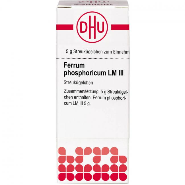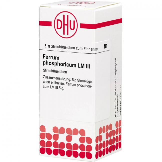 Ferrum phosphoricum LM III ist ein homöopathisches Arzneimittel. Registriertes homöopathisches Arzneimittel, daher ohne Angabe einer therapeutischen Indikation.