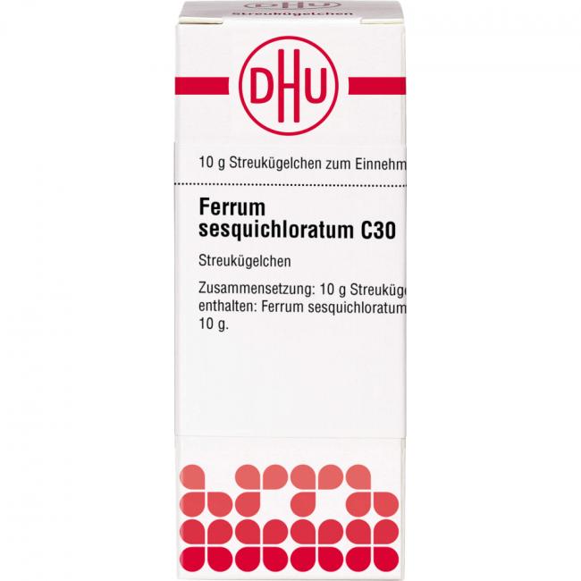 FERRUM SESQUICHLORATUM C 30 Globuli. Anwendungsgebiete: Anwendungsgebiete: Registriertes homöopathisches Arzneimittel, daher ohne Angabe einer therapeutischen Indikation. Warnhinweis: Dieses Arzneimittel enthält Sucrose (Saccharose / Zucker).
