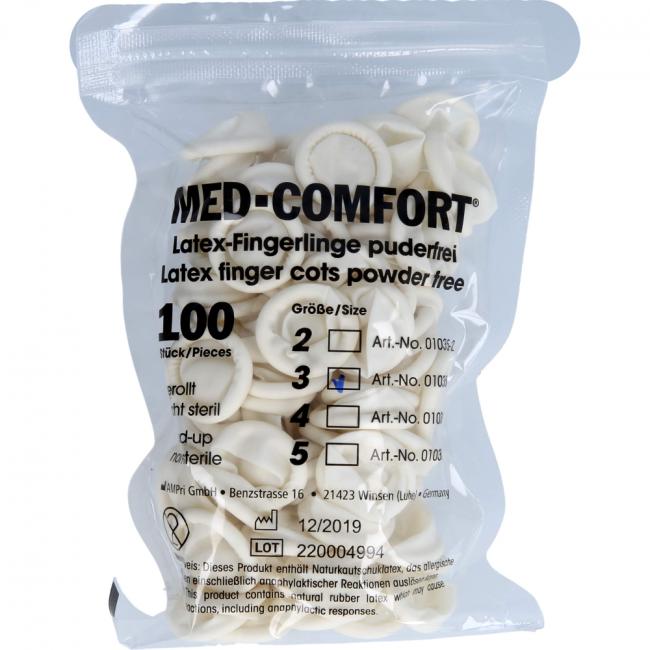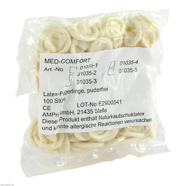 Med Comfort Latex-Fingerlinge, puderfrei, gerollt.