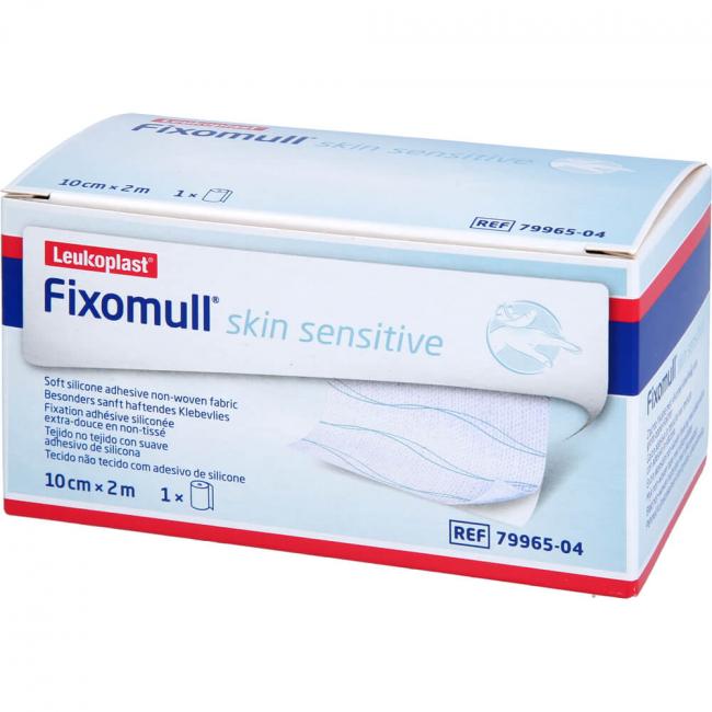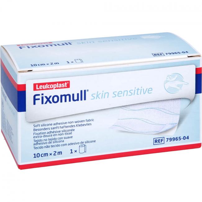 Fixomull skin sensitive dient der besonders schonenden vollflächigen Fixierung für Patienten mit empfindlicher und geschädigter Haut. Dank des sanft haftenden Silikonauftrages ist selbst sehr empfindliche Haut wie Babyhaut, Altershaut, Pergamenthaut, Cortisonhaut oder durch häufige Fixierung beanspruchte Haut sicher versorgt. Neben einem sicheren Halt kann ein atraumatischer und schmerzarmer Verbandwechsel gewährleistet werden, wodurch Hautschädigungen vorgebeugt werden können. Darüber hinaus lässt sich Fixomull skin sensitive mehrfach repositionieren, ohne an Klebkraft zu verlieren oder Kleberück stände auf der Haut zu hinterlassen. Fixomull skin sensitive ist sehr flexibel und querelastisch dehnbar, weshalb es sich an konturierten Körperstellen hervorragend anschmiegt und einen hohen Tragekomfort bietet. Der bedarfsgerechte Zuschnitt ermöglicht eine einfache und schnelle Applikation. Zudem verfügt es über wasserdampfdurchlässige Materialien, wodurch das Risiko von Mazerationen reduziert wird. Mit Fixomull skin sensitive wird die Haut optimal geschont und eine erfolgreiche Therapie unterstützt. Fixomull skin sensitive besteht aus einem weichen Polyestervlies, beschichtet mit einem Silikonauftrag.