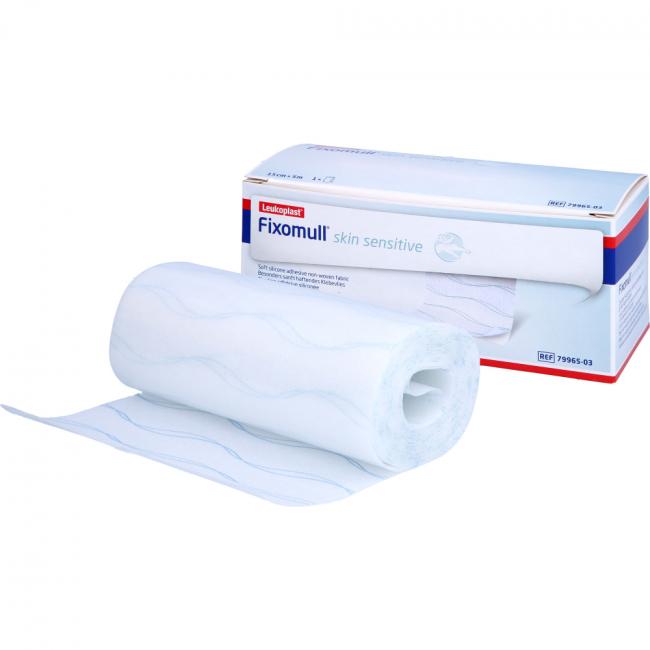 Fixomull skin sensitive dient der besonders schonenden vollflächigen Fixierung für Patienten mit empfindlicher und geschädigter Haut. Dank des sanft haftenden Silikonauftrages ist selbst sehr empfindliche Haut wie Babyhaut, Altershaut, Pergamenthaut, Cortisonhaut oder durch häufige Fixierung beanspruchte Haut sicher versorgt. Neben einem sicheren Halt kann ein atraumatischer und schmerzarmer Verbandwechsel gewährleistet werden, wodurch Hautschädigungen vorgebeugt werden können. Darüber hinaus lässt sich Fixomull skin sensitive mehrfach repositionieren, ohne an Klebkraft zu verlieren oder Kleberück stände auf der Haut zu hinterlassen. Fixomull skin sensitive ist sehr flexibel und querelastisch dehnbar, weshalb es sich an konturierten Körperstellen hervorragend anschmiegt und einen hohen Tragekomfort bietet. Der bedarfsgerechte Zuschnitt ermöglicht eine einfache und schnelle Applikation. Zudem verfügt es über wasserdampfdurchlässige Materialien, wodurch das Risiko von Mazerationen reduziert wird. Mit Fixomull skin sensitive wird die Haut optimal geschont und eine erfolgreiche Therapie unterstützt. Fixomull skin sensitive besteht aus einem weichen Polyestervlies, beschichtet mit einem Silikonauftrag.