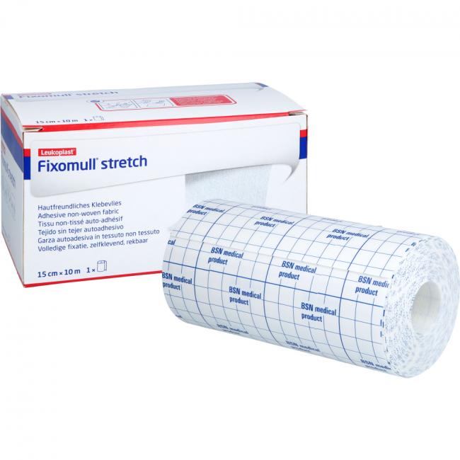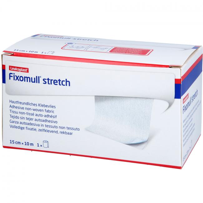 Verbände anlegen und fixieren erfordert höchste Anpassungsfähigkeit und Flexibilität im OP, auf der Station und in der ambulanten Versorgung. Mit Fixomull stretch können insbesondere großflächige Verbände einfach und schnell fixiert werden. Durch den bedarfsgerechten Zuschnitt ist die Methode material- und kostensparend. Fixomull stretch ist durch seine Querelastizität anschmiegsam und passt sich auch stark konturierten Körperpartien gut an. Abschnürungen, Stauungen und Durchblutungsstörungen werden verhindert. Fixomull stretch verfügt über eine gute Sofort- und Dauerklebkraft und gute Luft- und Wasserdampfdurchlässigkeit. Es beugt Kontaminationen vor, wird auch von hautempfindlichen Patienten ausgezeichnet vertragen und ist einfach und vielfältig einsetzbar. Fixomull stretch ist besonders wirtschaftlich in der 20-Meter-Großrolle. Fixomull stretch besteht aus einem Polyestervlies, beschichtet mit Polyacrylatkleber.