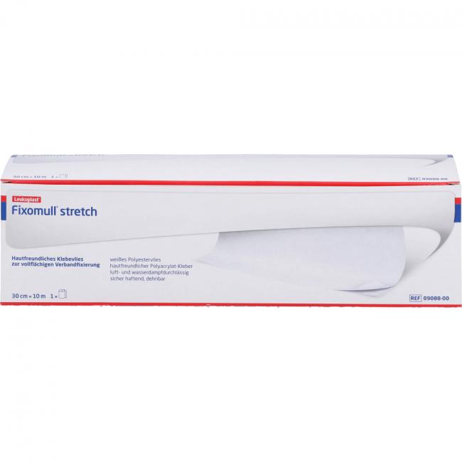 Verbände anlegen und fixieren erfordert höchste Anpassungsfähigkeit und Flexibilität im OP, auf der Station und in der ambulanten Versorgung. Mit Fixomull stretch können insbesondere großflächige Verbände einfach und schnell fixiert werden. Durch den bedarfsgerechten Zuschnitt ist die Methode material- und kostensparend. Fixomull stretch ist durch seine Querelastizität anschmiegsam und passt sich auch stark konturierten Körperpartien gut an. Abschnürungen, Stauungen und Durchblutungsstörungen werden verhindert. Fixomull stretch verfügt über eine gute Sofort- und Dauerklebkraft und gute Luft- und Wasserdampfdurchlässigkeit. Es beugt Kontaminationen vor, wird auch von hautempfindlichen Patienten ausgezeichnet vertragen und ist einfach und vielfältig einsetzbar. Fixomull stretch ist besonders wirtschaftlich in der 20-Meter-Großrolle. Fixomull stretch besteht aus einem Polyestervlies, beschichtet mit Polyacrylatkleber.
