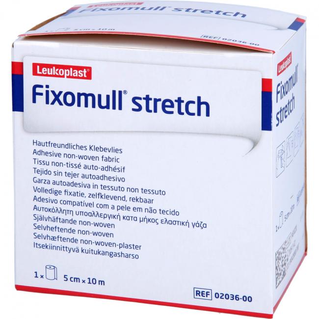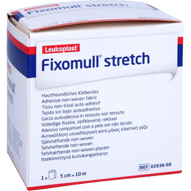 Verbände anlegen und fixieren erfordert höchste Anpassungsfähigkeit und Flexibilität im OP, auf der Station und in der ambulanten Versorgung. Mit Fixomull stretch können insbesondere großflächige Verbände einfach und schnell fixiert werden. Durch den bedarfsgerechten Zuschnitt ist die Methode material- und kostensparend. Fixomull stretch ist durch seine Querelastizität anschmiegsam und passt sich auch stark konturierten Körperpartien gut an. Abschnürungen, Stauungen und Durchblutungsstörungen werden verhindert. Fixomull stretch verfügt über eine gute Sofort- und Dauerklebkraft und gute Luft- und Wasserdampfdurchlässigkeit. Es beugt Kontaminationen vor, wird auch von hautempfindlichen Patienten ausgezeichnet vertragen und ist einfach und vielfältig einsetzbar. Fixomull stretch ist besonders wirtschaftlich in der 20-Meter-Großrolle. Fixomull stretch besteht aus einem Polyestervlies, beschichtet mit Polyacrylatkleber.