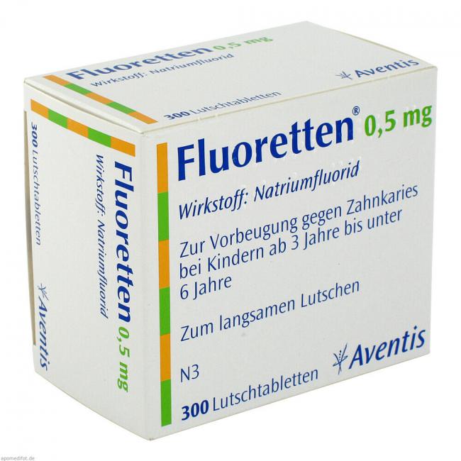 Fluoretten 0,5 mg Lutschtabletten zur Anwendung bei Kindern ab 3 Jahren, Jugendlichen und Erwachsenen Wirkstoff: Natriumfluorid Anwendungsgebiete: Arzneimittel zur Kariesvorbeugung mit dem Wirkstoff Natriumfluorid.