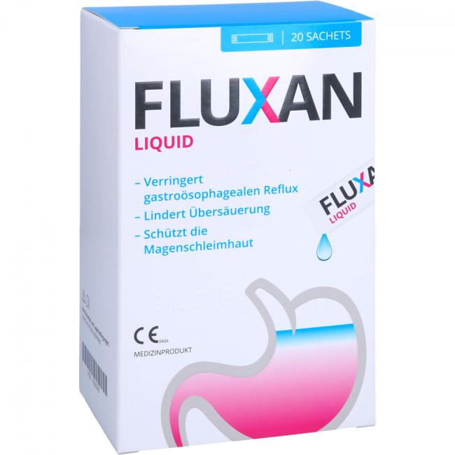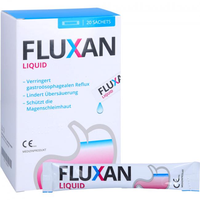 Fluxan dient der Behandlung und Vorbeugung von gastroösophagealem Reflux, brennendem Gefühl, Magenübersäuerung und dem Schutz der Schleimhäute in Magen und Speiseröhre. Fluxan ermöglicht die Kontrolle einer Übersäuerung des Magens und beugt Brennen, Magenschmerzen und damit zusammenhängenden Verdauungsbeschwerden vor. Fluxan wirkt unabhängig von der Ursache der Beschwerden; darüber hinaus kann es als Adjuvans bei Gastritis eingesetzt werden.