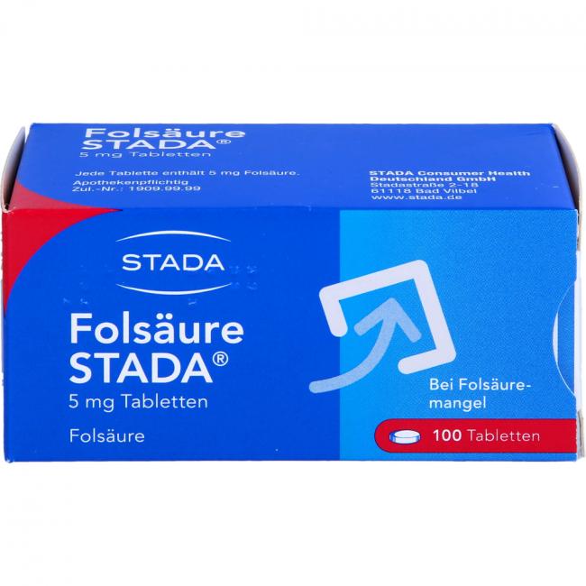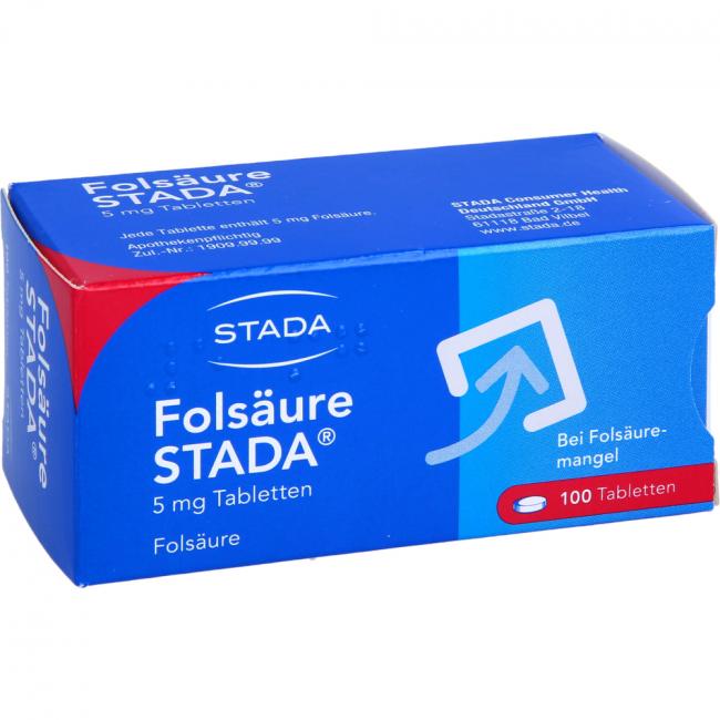 Folsäure Stada 5 mg Tabletten.. Anwendungsgebiete: zur Behandlung von Folsäuremangelzuständen, die diätetisch nicht behoben werden können.