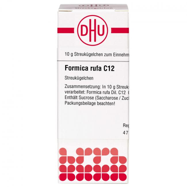 Formica rufa C 12. Anwendungsgebiete: Registriertes homöopathisches Arzneimittel, daher ohne Angabe einer therapeutischen Indikation. Warnhinweis: Dieses Arzneimittel enthält Sucrose (Saccharose / Zucker).