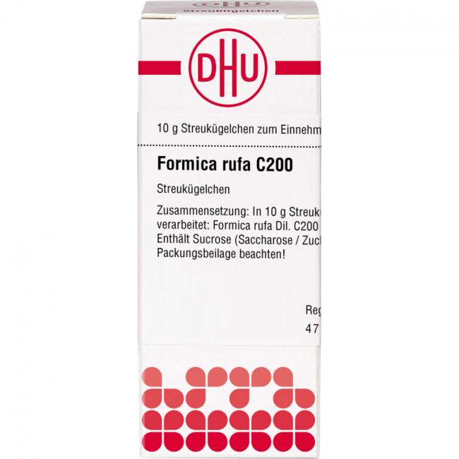 FORMICA RUFA C 200 Globuli. Anwendungsgebiete: Anwendungsgebiete: Registriertes homöopathisches Arzneimittel, daher ohne Angabe einer therapeutischen Indikation. Warnhinweis: Dieses Arzneimittel enthält Sucrose (Saccharose / Zucker).