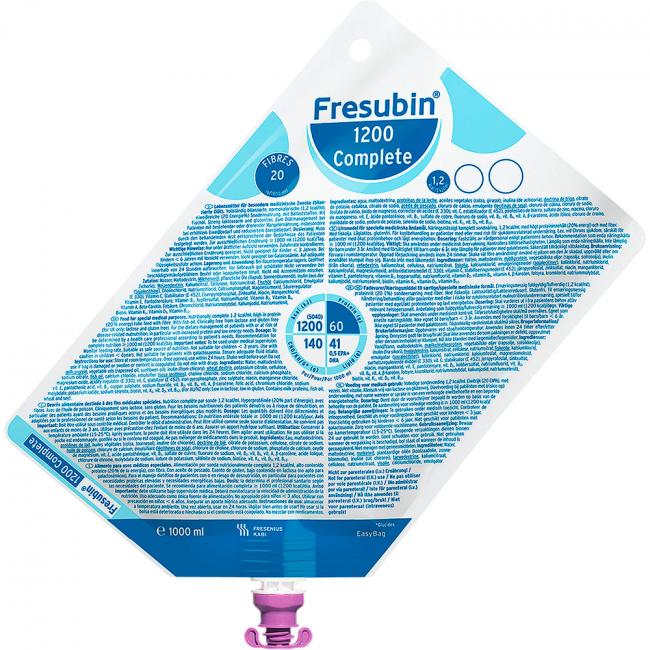 Nur unter medizinischer Kontrolle verwenden. Pumpenkontrollierte Applikation bevorzugen. Auf adäquate Flüssikeitsbilanzierung achten. Nicht geeignet bei grundsätzlicher Kontraindikation der enteralen Ernährung, wie z.B. Darmatonie, Ileus, akuten gastrointestinalen Blutungen. Nicht geeignet bei schwerer Malassimilation. Nicht geeignet bei angeborenen Stoffwechseldefekten bzw. Intoleranz gegen einen in Fresubin 1200 Complete enthaltenen Inhaltsstoff. Nicht geeignet bei Galaktosämie. Bei schwerem Organversagen wie schwerer Leber- oder Niereninsuffizienz sollte Fresubin 1200 Complete abhängig von der Stickstofftoleranz des Patienten mit Vorsicht eingesetzt werden. Nicht geeignet für Kinder < 1 Jahr. Bei Kindern < 6 Jahren mit Vorsicht verwenden. Streng laktosearm, glutenfrei.