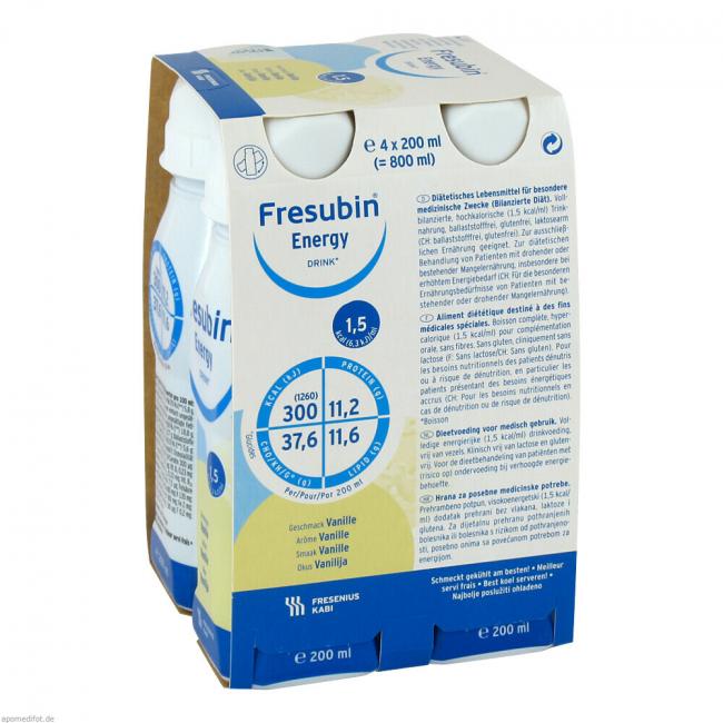Pflichtangaben FRESUBIN ENERGY DRINK Vanille Trinkflasche, 4x200 Milliliter