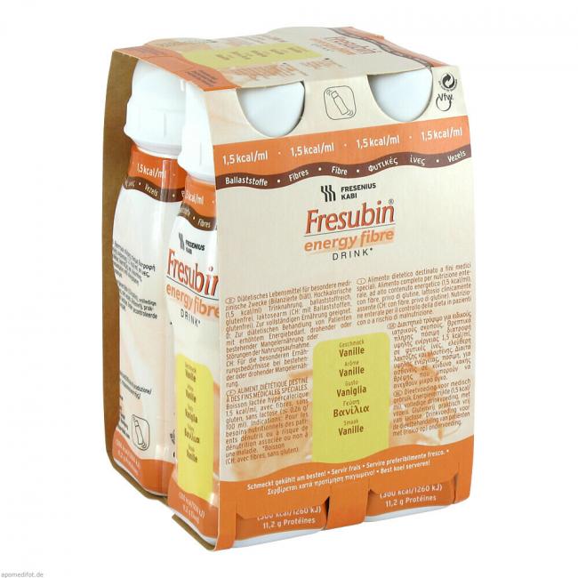 Pflichtangaben FRESUBIN ENERGY Fibre DRINK Vanille Trinkflasche, 4x200 Milliliter