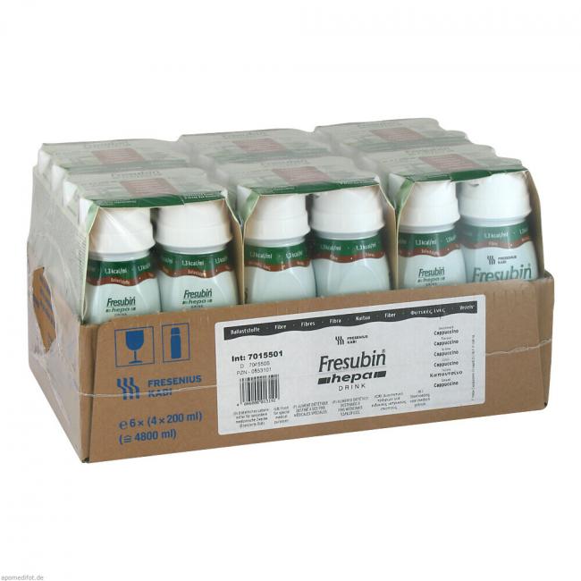 Pflichtangaben FRESUBIN HEPA DRINK Cappuccino Trinkflasche, 6x4x200 Milliliter