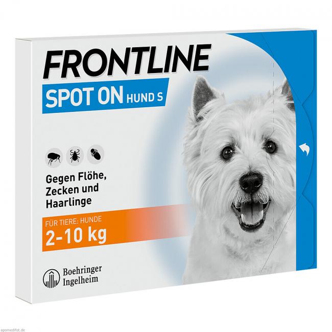 Frontline Spot on Hund S 67 mg, Lösung. Wirkstoff: Fipronil. Anwendungsgebiete: Zur Behandlung von Hunden gegen Floh-, Zecken- und Haarlingsbefall.