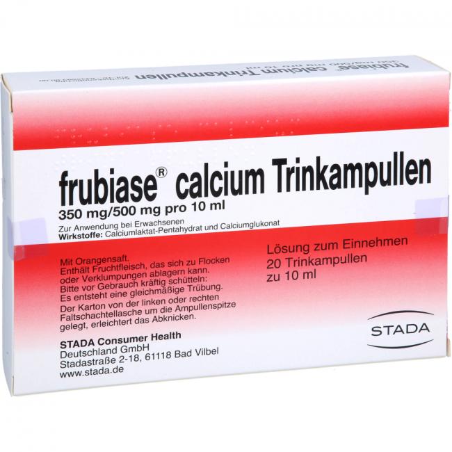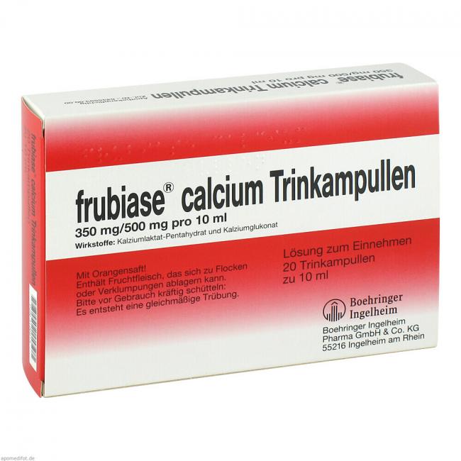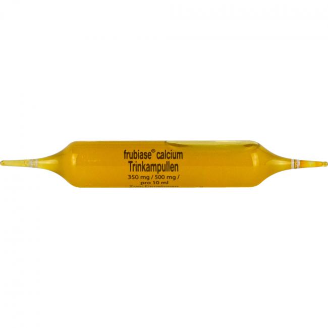 frubiase calcium Trinkampullen enthalten Orangenextrakt. Dieser enthält Fruchtfleisch und ist als Naturstoff hinsichtlich Farbe, Trübung und Geschmack veränderlich. Eine Bildung von Flocken oder Klümpchen in der Lösung bedeutet nicht, dass Wirkstoffe ausgefallen sind; der therapeutische Wert der Lösung ist dadurch nicht gemindert. Zur Auflösung solcher Fruchtfleischablagerungen genügt es, die Trinkampullen kräftig zu schütteln.