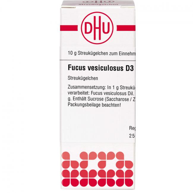 Fucus Vesiculosus D 3. Anwendungsgebiete: Registriertes homöopathisches Arzneimittel, daher ohne Angabe einer therapeutischen Indikation. Warnhinweis: Dieses Arzneimittel enthält Sucrose (Saccharose / Zucker).