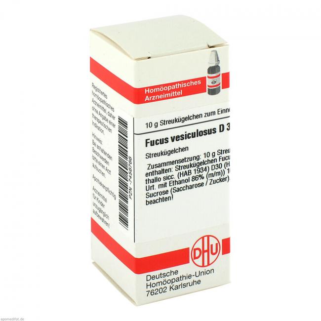 Fucus Vesiculosus D 30. Anwendungsgebiete: Registriertes homöopathisches Arzneimittel, daher ohne Angabe einer therapeutischen Indikation. Warnhinweis: Dieses Arzneimittel enthält Sucrose (Saccharose / Zucker).