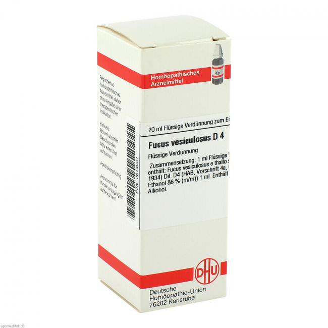 Fucus Vesiculosus D 4. Anwendungsgebiete: Registriertes homöopathisches Arzneimittel, daher ohne Angabe einer therapeutischen Indikation. Warnhinweis: Enthält 51 Vol.% Alkohol.