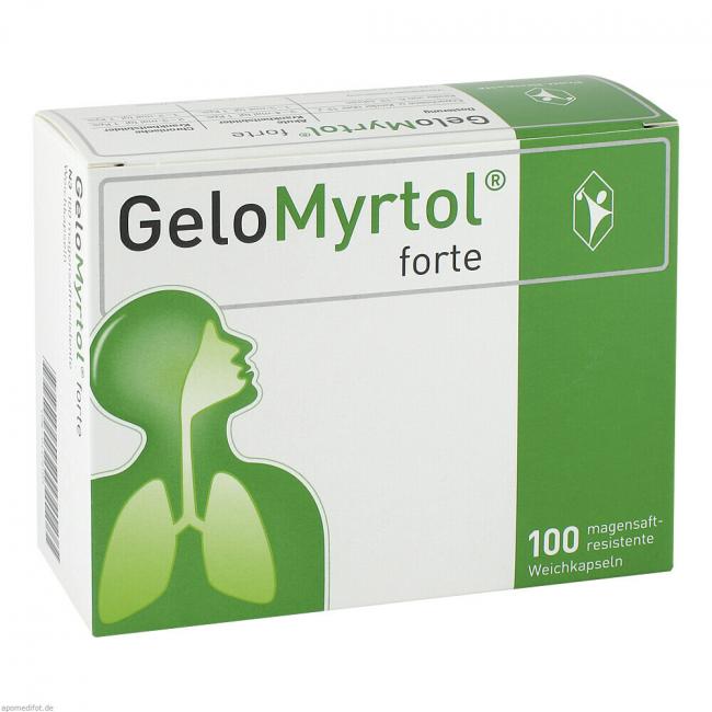 GeloMyrtol forte 300 mg, magensaftresistente Weichkapseln. Anwendungsgebiete: Zur Schleimlösung und Erleichterung des Abhustens bei akuter und chronischer Bronchitis. Zur Schleimlösung bei Entzündungen der Nasennebenhöhlen (Sinusitis). Zur Anwendung bei Erwachsenen, Jugendlichen und Kindern ab 6 Jahren. Warnhinweis: Enthält Sorbitol.