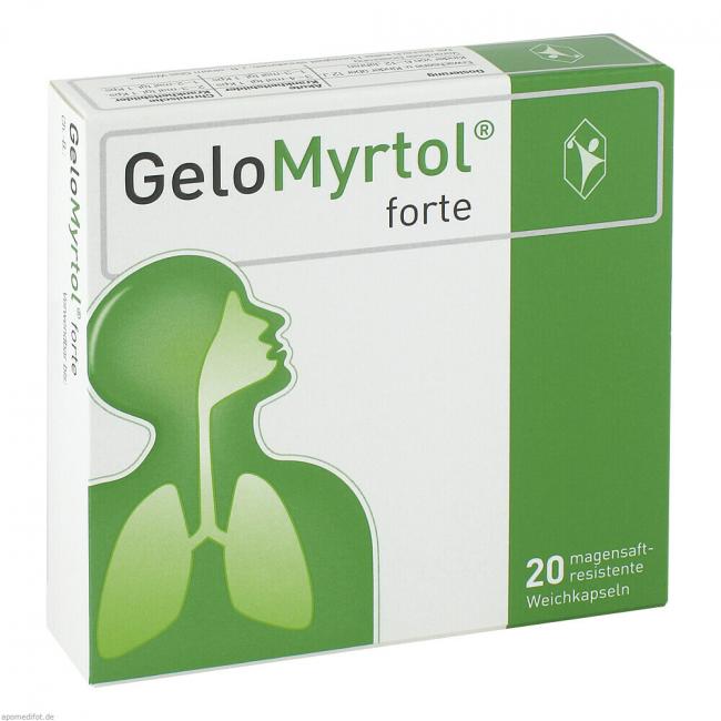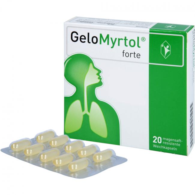 GeloMyrtol forte 300 mg, magensaftresistente Weichkapseln. Anwendungsgebiete: Zur Schleimlösung und Erleichterung des Abhustens bei akuter und chronischer Bronchitis. Zur Schleimlösung bei Entzündungen der Nasennebenhöhlen (Sinusitis). Zur Anwendung bei Erwachsenen, Jugendlichen und Kindern ab 6 Jahren. Warnhinweis: Enthält Sorbitol.