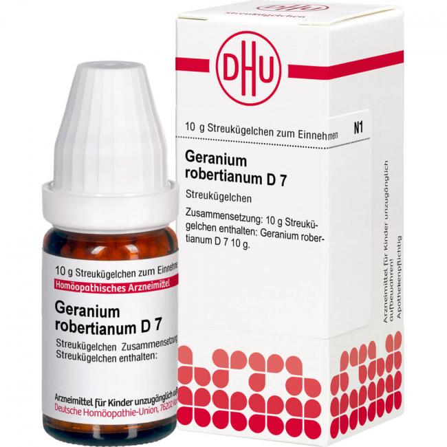 Geranium robertianum D 7. Anwendungsgebiete: Registriertes homöopathisches Arzneimittel, daher ohne Angabe einer therapeutischen Indikation. Warnhinweis: Dieses Arzneimittel enthält Sucrose (Saccharose / Zucker).