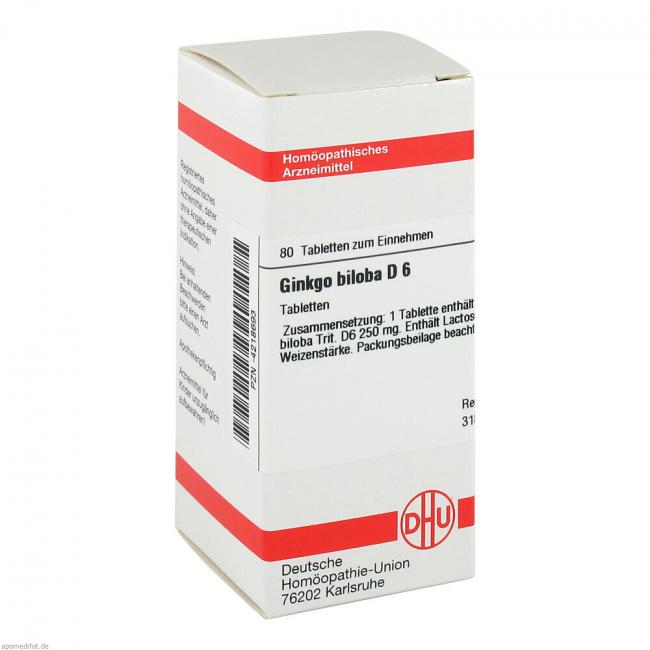 Ginkgo Biloba D 6. Anwendungsgebiete: Registriertes homöopathisches Arzneimittel daher ohne Angabe einer therapeutischen Indikation. Warnhinweis: Enthält Lactose (Milchzucker) und Weizenstärke.