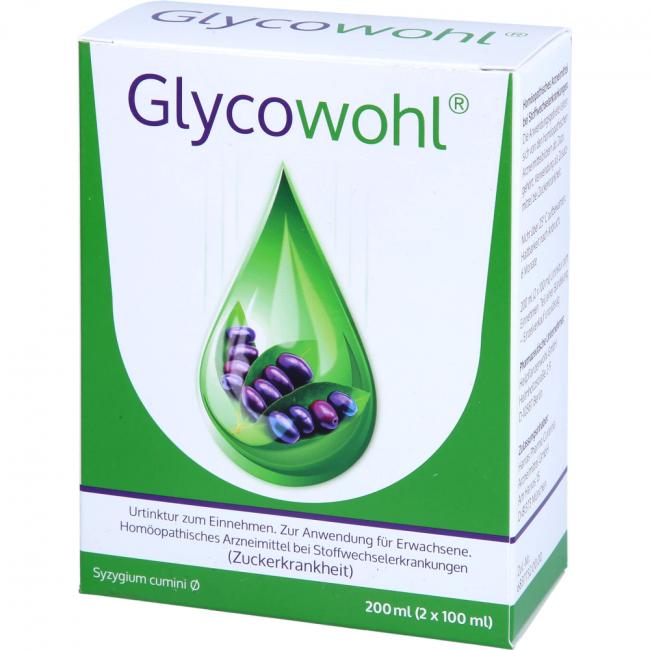 Glycowohl Urtinktur. Anwendungsgebiete: Die Anwendungsgebiete leiten sich von den homöopathischen Arzneimittelbildern ab. Dazu gehört: Verwendung als Zusatzmittel bei Zuckerkrankheit. Warnhinweis: Enthält 70 Vol.-% Alkohol!