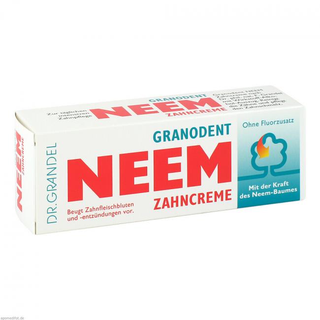 In Indien werden Zweige des Neem-Baumes zur Zahnreinigung verwendet. Vor Gebrauch wird das Ende eines solchen Zweiges zerkaut, bis die Holzfasern bloßliegen und einem Pinsel gleichen. Mit diesem Pinsel entfernen dann die Inder Speisereste aus ihrem Gebiss und benützen ihn gleichzeitig zur Zahnpflege. Der so aufgekaute Zweig wird nach einmaligem Gebrauch weggeworfen. Beim Zerkauen der Zweige gelangen die Wirkstoffe an das Zahnfleisch und verhindern dort die Ausbreitung von Zahnfleischentzündungen. Diese Beobachtungen haben dazu geführt, einen alkoholhaltigen Totalextrakt aus der Rinde des indischen Neem-Baumes herzustellen und ihn in die Dr. Grandel Neem Zahncreme einzuarbeiten. In Kombination mit Alkohol hat Neem eine Hemmwirkung auf die Entwicklung von Zahnfleischentzündungen.