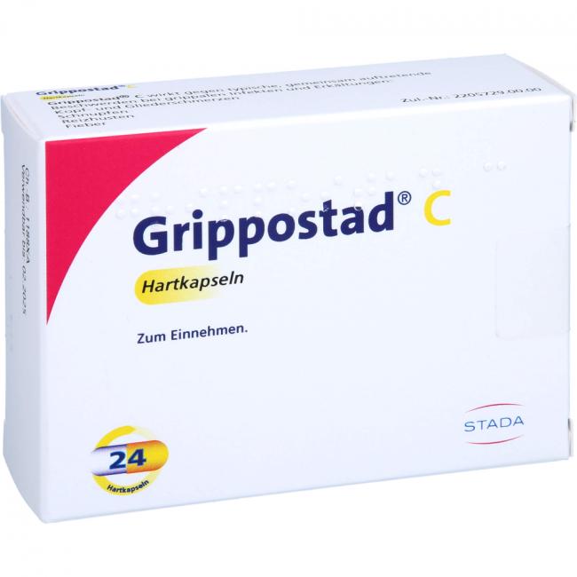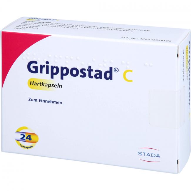 Grippostad C Hartkapseln. Wirkstoffe: Paracetamol, Ascorbinsäure (Vitamin C), Coffein und Chlorphenaminmaleat. Anwendungsgebiete: Zur symptomatischen Behandlung von gemeinsam auftretenden Beschwerden wie Kopf- und Gliederschmerzen, Schnupfen und Reizhusten im Rahmen einer einfachen Erkältungskrankheit. Warnhinweis: Enthält Lactose.