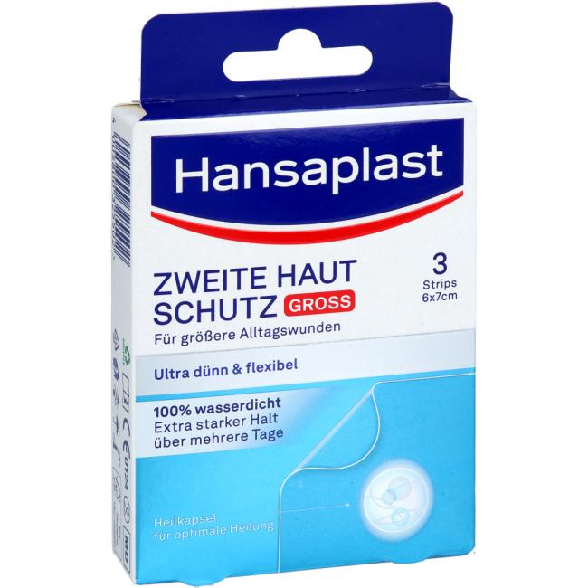 Pflichtangaben HANSAPLAST Zweite Haut Schutz Pflaster groß, 3 Stück