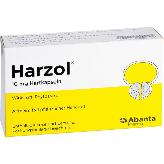 Harzol 10 mg Hartkapseln. Wirkstoff: Phytosterol. Anwendungsgebiete: zur symptomatischen Behandlung der benignen Prostatahyperplasie.