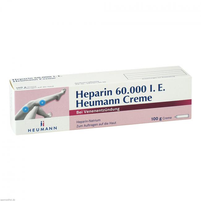 Heparin-Natrium. 100 g Creme enthalten 60.000 I.E. Heparin-Natrium (Mucosa vom Schwein).