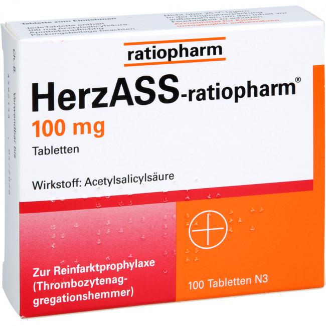 Pflichtangaben HERZASS-ratiopharm 100 mg Tabletten, 100 Stück