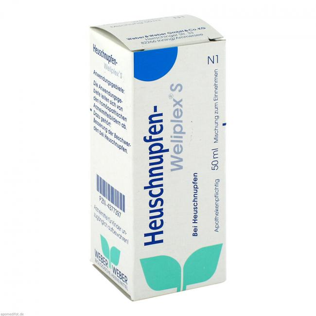 Heuschnupfen-Weliplex S, Mischung zum Einnehmen. Anwendungsgebiete: Die Anwendungsgebiete leiten sich von den homöopathischen Arzneimittelbildern ab. Dazu gehört: Besserung der Beschwerden bei Heuschnupfen. Warnhinweis: Enthält 55 Vol.-% Alkohol!