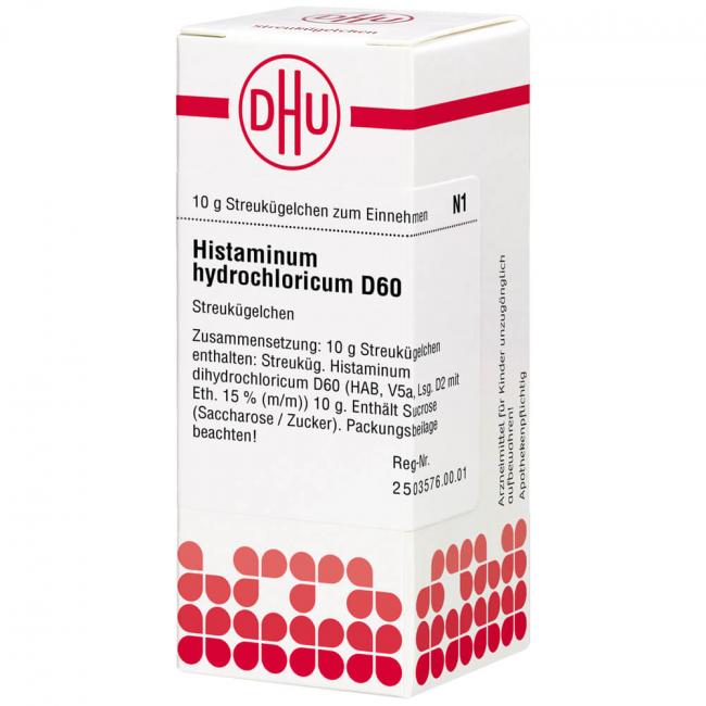 Histaminum hydrochloricum D 60. Anwendungsgebiete: Registriertes homöopathisches Arzneimittel, daher ohne Angabe einer therapeutischen Indikation. Warnhinweis: Dieses Arzneimittel enthält Sucrose (Saccharose / Zucker).