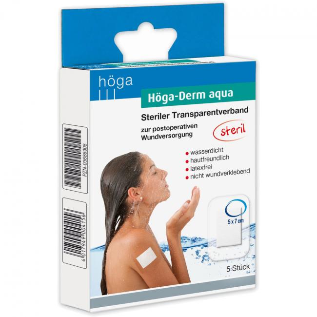 Pflichtangaben HÖGA-DERM aqua ste.Transp.Verb.m.Wundaufl.5x7 cm, 5 Stück