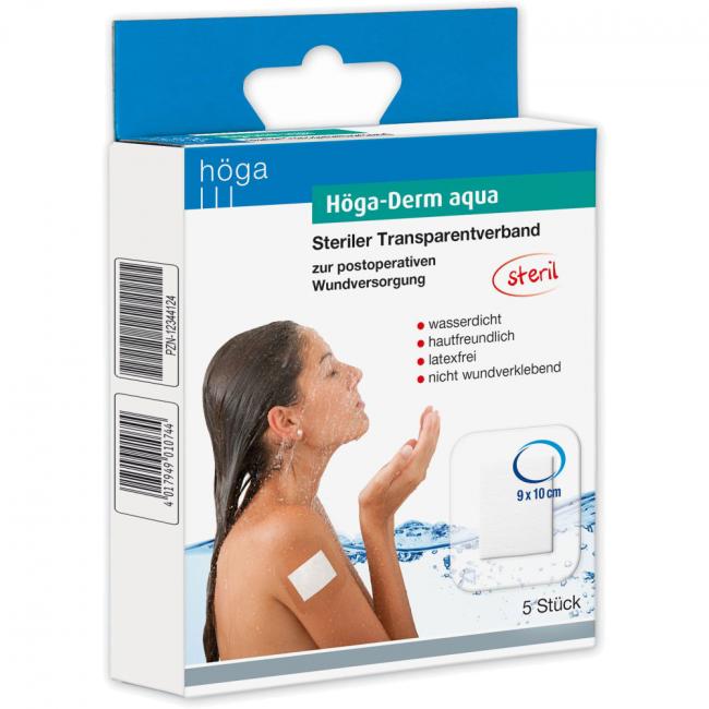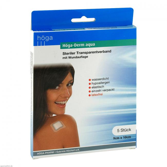 Pflichtangaben HÖGA-DERM aqua ste.Transp.Verb.m.Wundaufl.9x10 cm, 5 Stück